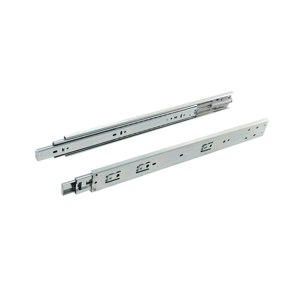 "Corredera Extensión Completa Embalada Cierre Suave 45Mm Ancho, Extensión Total 35Cm, Material Metal, Color Acero, Cojinetes De Bolas, Montaje Lateral E Inferior, Capacidad De Carga 45 Kg En Referencia 45 Cm Espesor Material 1.3 Mm, Cierre Suave, Desenganchable Con Seguro De Retención En Posición De Cerrado, Recomendación De Uso CajónCocina Y Gabinetes"