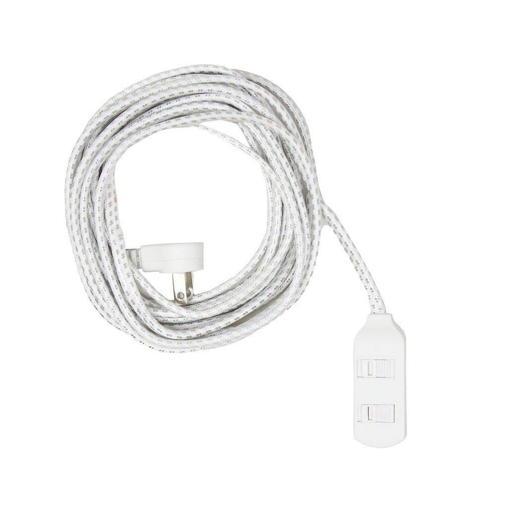 "Esta extensión electrica de diseño único contribuye al encanto general de su espacio sin interrumpir ni distraer la decoración de su hogar. La cubierta del cable de tela tejida en color blanco no solo agrega un elemento de diseño inesperado a su hogar u oficina, sino que también aumenta la durabilidad del cable al tiempo que evita que se doble y se enrede. Con tres tomacorrientes polarizados, el cable de extensión es ideal para alimentar lámparas, ventiladores y otros aparatos electrónicos domésticos, mientras que el cable extralargo de 4.5 metros mantiene todo al alcance. Además, el enchufe plano facilita la conexión a enchufes donde el espacio es limitado. ¡EXTENSIîN ELÉCTRICA CON FORRO! Extensión eléctrica con forro de tela trenzada con un patrón de color blanco que agrega un toque decorativo personalizado a cualquier espacio de la casa y oficina, al mismo tiempo que mantiene organizados sus cables y libres de enredos. ¡MÁS ENERGIA A TU ALCANCE! Sus 3 salidas polarizadas son perfectas para lamparas de mesa y de piso, electrodomésticos, cargadores de teléfonos y otros equipos electrónicos. ¡MAYOR ALCANCE! La tira multi contactos proporciona un alcance óptimo con el cable de alimentación extra largo de 4.6 metros. ¡GRAN SEGURIDAD! El sistema deslice para cerrar en los toma corrientes lo protegen contra las descargas eléctricas cuando no estén en uso. No conecte más de 1625 Watts en esta extensión eléctricaSí FACTURAMOS CUENTAS CON 1 A„O DE GARANTíA"