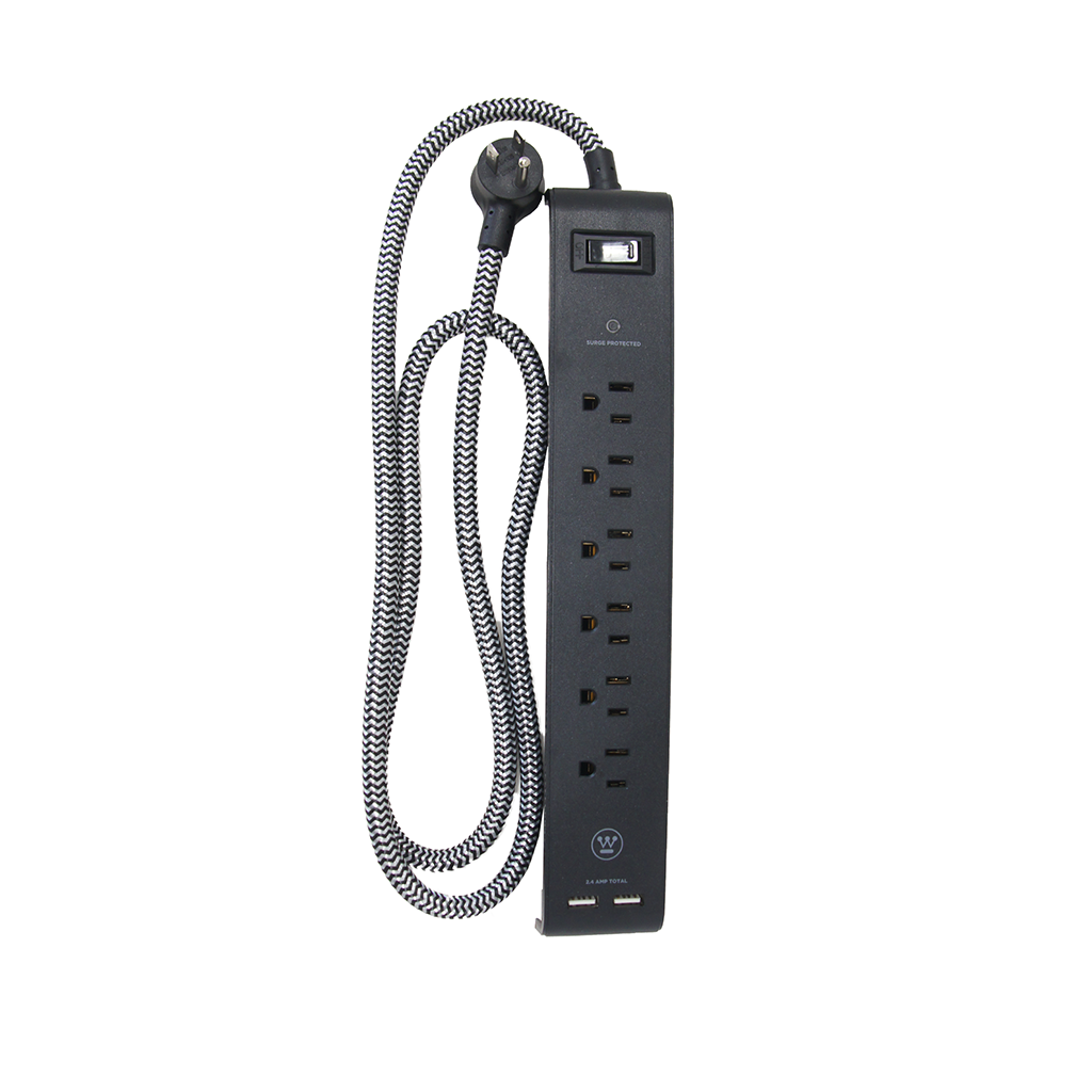6 amplias combinaciones de enchufes, 2 puertos USB, para cargar hasta 8 dispositivos al mismo tiempo, incluyendo teléfonos móviles, tabletas, ordenadores portátiles y carga de lámparas.